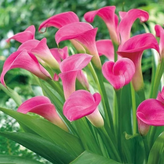 Калла Гарнет Глоу (Calla Garnet Glow) – это верный выбор для оформления придомовой зоны, бассейнов или просто помещений (в горшках). Эффектный южный многолетник обеспечит презентабельный вид саду с середины лета до осени. Цветы отлично смотрятся и сохраняются в вазах (в срезанном виде). Растение не капризно, быстро вырастает до 60 сантиметров, обладает красивой, крупной листвой с восковым налетом (вытянутой формы). Сильный цветонос имеет одно соцветие в виде молочного початка, сам цветок воронковидной формы, малиново-розового оттенка. Каллы любят рассеянный свет, регулярный полив и удобренные почвы на время роста. По окончанию теплого сезона луковицы извлекают из почвы для хранения.