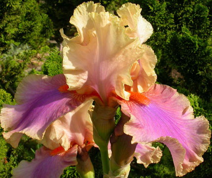 Colette Thurillet - это очень необычное сочетание мягких оттенков. Лососево-бежевые стандарты и гофрированные розово-коричневые фолы разбавлены орхидейно-фуксиевыми тонами. Бородки огненно-мандаринового цвета. Сорт хорошей производительности от 8 до 12 бутонов на побеге, позднего срока цветения.