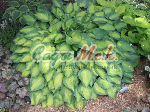 Хоста Аvосаdо – яркий и эффектный представитель крупных многолетников. Его красивые, большие, выпуклые листья широкой овальной формы образуют быстро нарастающий, высокий куст, занимающий во взрослом возрасте большой участок. Декоративность листве придает зеленовато-желтая серединка и широкая, контрастная, темно-зеленая окантовка. Со временем окраска и текстура меняется: листовые пластины становятся слегка вафельными, а центр приобретает золотистый цвет. В августе растение зацветает. Его бледно-лавандовые цветки не слишком привлекают внимание, но зато они издают хорошо ощутимый аромат. Сорт декоративный, засухоустойчивый и неприхотливый, с удовольствием растет в тени, не подвергается болезням.