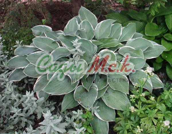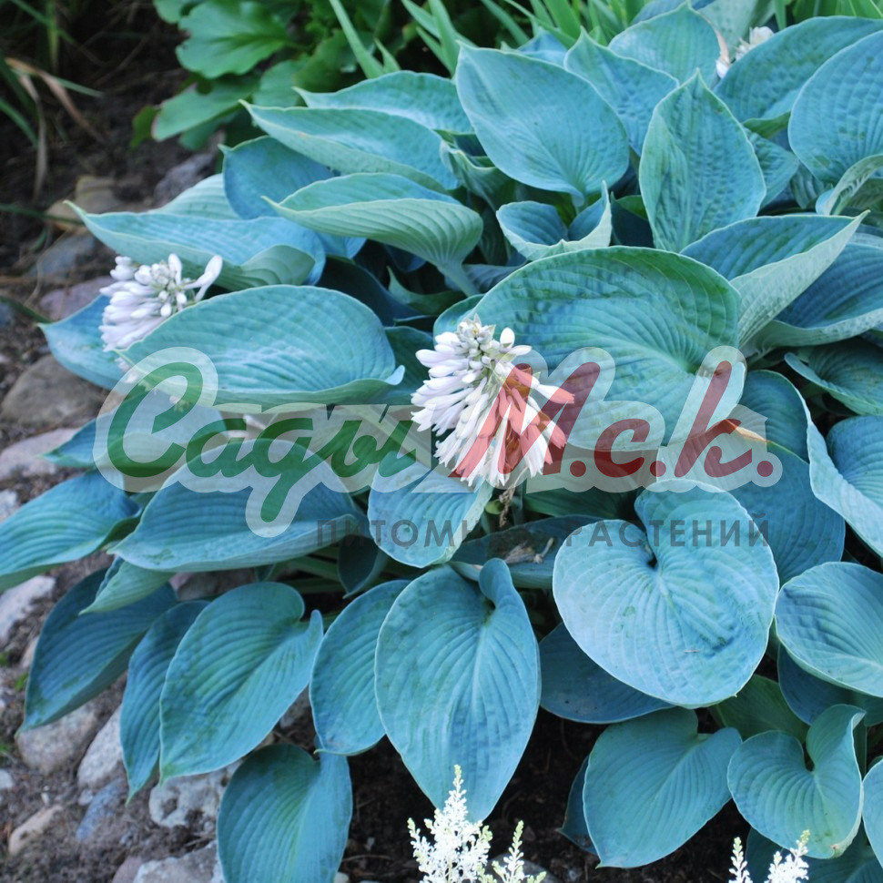 Хоста Bluе Mаmmоth – очень крупное гибридное растение с голубой окраской, которое на питательных почвах может достигнуть в ширину 100 – 120 см. У многолетника овально-сердцевидные, широкие листовые пластины удивительного голубого цвета с сизым отливом, имеющие волнистую поверхность и вафельной фактуру. Впечатляет контраст насыщенно голубой листвы и белых колокольчатых цветков, которые появляются в конце августа. Сорт тенелюбивый, хотя может переносить и солнечные места, но при этом теряет насыщенность голубого цвета. Растение хорошо разрастается, не поражается болезнями и вредителями, любит плодородные и слегка увлажненные почвы.