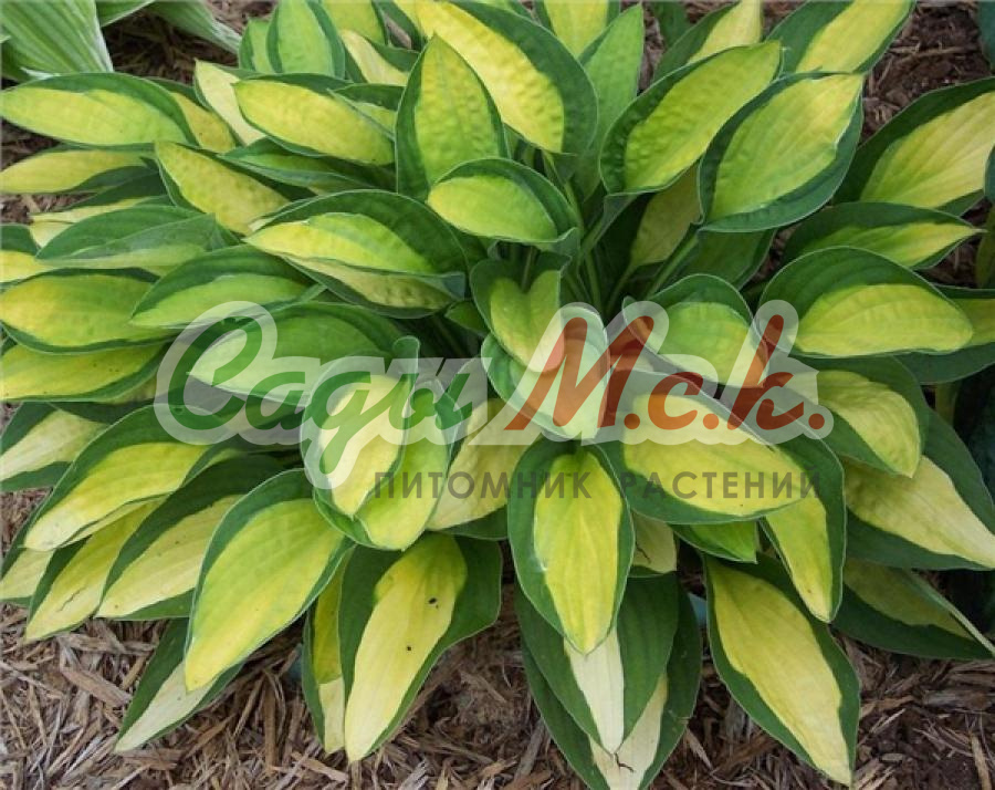 Хоста гибридная Марджиз Эйнджел - высота растения 70 см, диаметр куста во взрослом состоянии 100 см. У данного сорта листья жёлтые с широкой голубовато-сизой каймой.