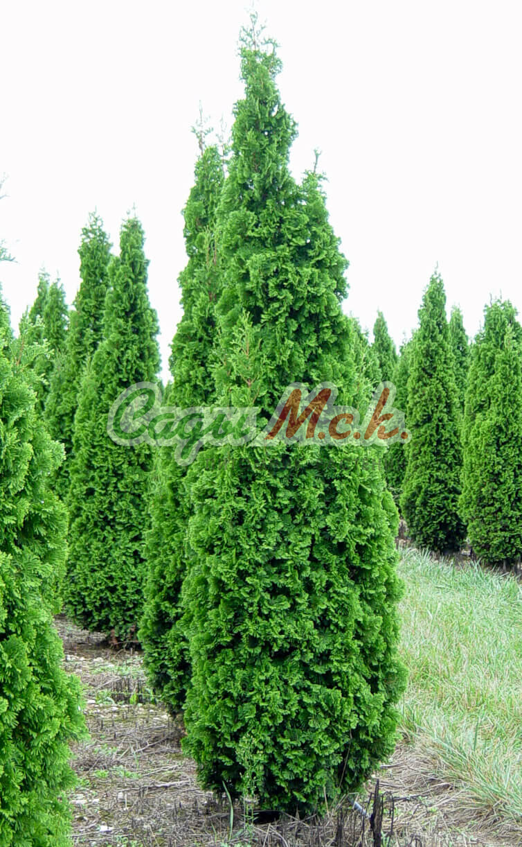 Туя западная Frieslandia - растение до 8 м в высоту и до 3 м в диаметре. Растет быстро: годовой прирост в высоту составляет 20 см. Крона плотная, широкая, колоновидная. Хвоя матовая, плотная, чешуйчатая ярко-зеленого цвета. Осенью листва становится серовато-бурого цвета, а весной снова зеленеет. Популярный сорт. Благодаря сравнительно быстрому росту часто используется для создания формованных живых изгородей.